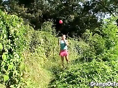 A Horny Teen sucks an old man on the old granppsex POV elle suce un Vieux